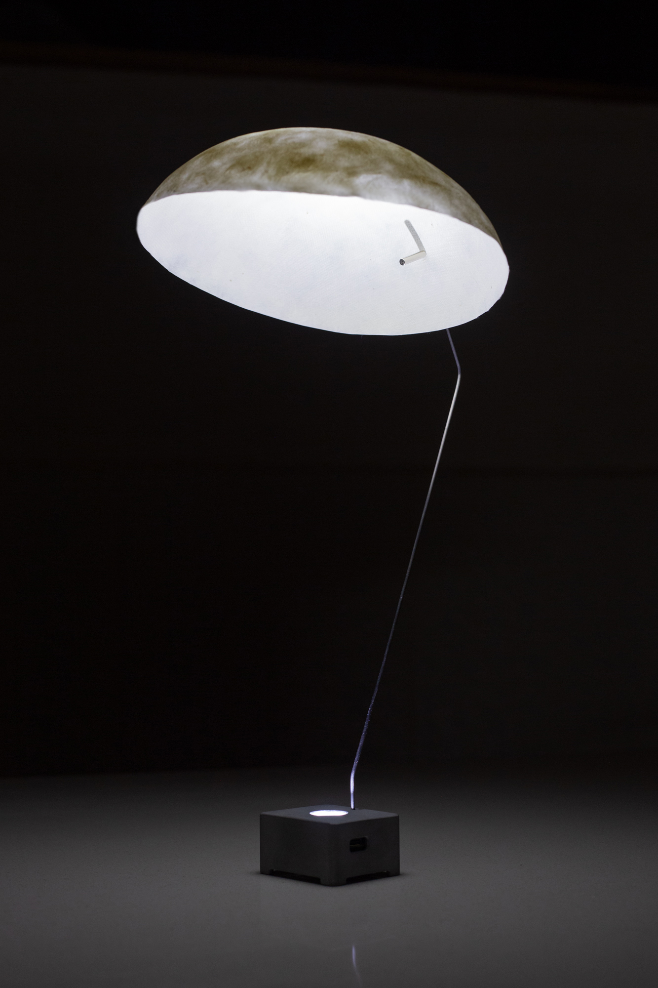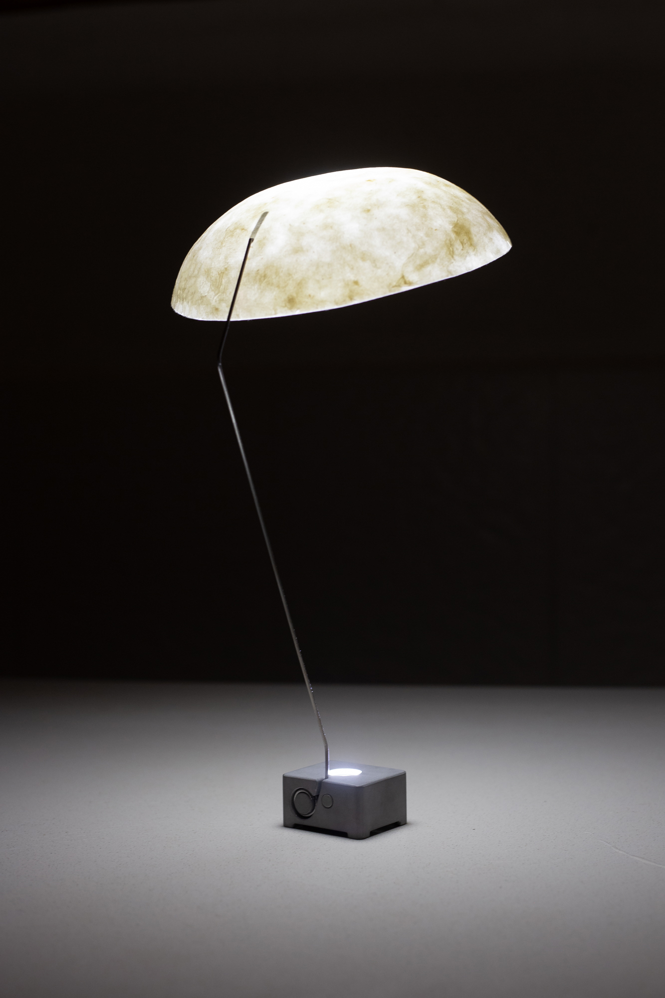 The use of open flames in indoor rooms usually only happens during festivities and romantic evenings. However, the warmth and naturalness of a flame can also be enjoyable in everyday situations and provide an alternative to electric light. In times of light pollution, the oil lamp offers less, but qualitative light. OEL LAMP is designed for everyday use, it takes reference from the typology of an electric table lamp. The polished lampshade reflects the flame onto the table so that there is enough light to read. The opening in the shade allows the heat of the flame to escape upwards. The oil reservoir is integrated in the leg and it can be refilled by taking off the upper part.